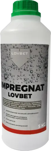 Známe beton a s ohledem na jeho dlouhodobý stav jsme vytvořili hydrofobní impregnační přípravek. Umožňuje snadnější čištění znečištěného povrchu. Produkt proniká do pórů betonu bez vytvoření povlaku a po zaschnutí je neviditelný. Povrchy chráněné impregnací LOVBET se stávají mnohem odolnějšími vůči povětrnostním vlivům, olejům, mastnotám atd.