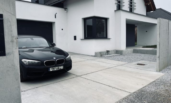Betonové desky použité k vybudování příjezdové cesty jsou silnější než zahradní desky. Poskytují povrchovou odolnost vůči vnějším faktorům, jsou velmi odolné a zároveň vzhledově atraktivní. Hodí se k moderní architektuře a jejich uspořádání je rychlejší a levnější než dlažební kostky nebo dlaždice.